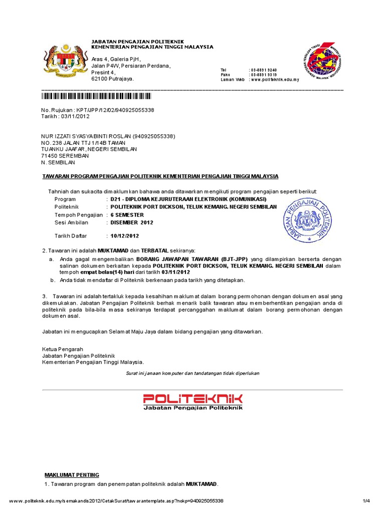 Bantuan bagi meringankan beban kewangan ketika pendaftaran kemasukan ke universiti dan juga sebagai galakan dan motivasi untuk meneruskan pengajian di peringkat lebih tinggi. * kategori warganegara asing yang berhak untuk mendaftar ke posisi yang dibiayai oleh negara. Jadwal, syarat dan tahapan tes penerimaan polri 2021/2022. Laman web yang memberi maklumat tentang laluan pendidikan lanjutan ke universiti awam dan kolej swasta di malaysia. Bahagian kemasukan pelajar ipta jabatan pendidikan tinggi (bkpa jpt) akan membuka kemudahan 'hotline' mulai 3 jun hingga 10 jun dari jam 8.30 pagi. Maklumat yang berkaitan sila rujuk kepada ruangan di bawah. Kelebihan politeknik yang dah dapat politeknik wajib tonton. Bagi permohonan ke politeknik, kolej komuniti dan ilka, rayuan boleh dibuat dengan mengemukakan permohonan terus kepada agensi berkaitan. Syarat minimum permohonan politeknik 2020. 124 likes · 1 talking about this. Dasar dan prosedur pemilihan kemasukan ke ipta dan politeknik premier program pengajian lepasan spm/setaraf sesi akademik 2013/2014 bil dasar pernyataan 1. Boleh membaca, menulis dan mengira 3. Permohonan kemasukan ke politeknik adalah dilakukan secara dalam talian (online), anda dikehendaki layari pautan khas untuk mengisi borang permohonan mengikut jenis.